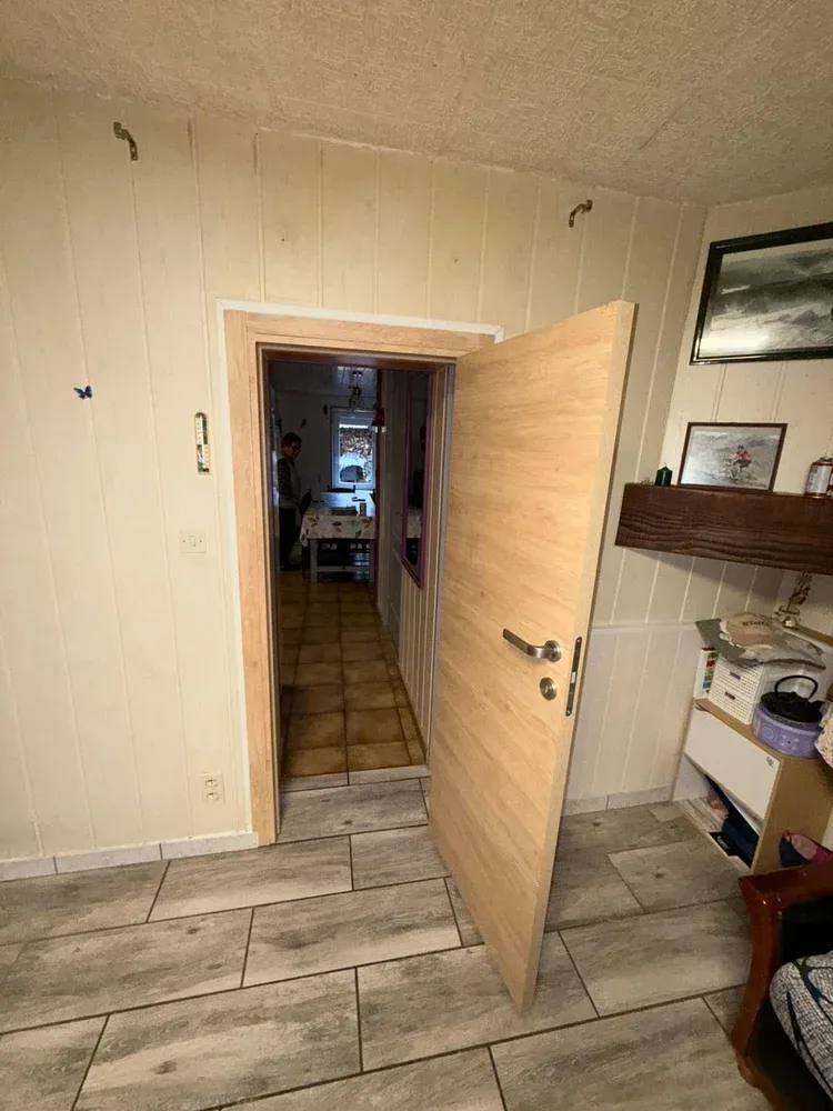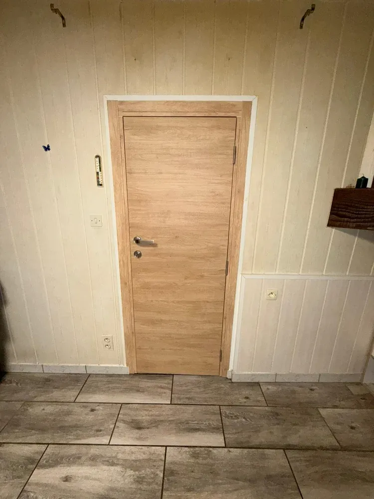 DOME HABITAT RÉNOV est fier de vous présenter l'un de ses récents projets : l'aménagement d'une porte sur-mesure colorie bois à Clermont-Ferrand. Ce projet a été réalisé pour offrir un accès optimisé à une salle de bain, en partant d'un simple encadrement de porte existant. Grâce à notre expertise en aménagement intérieur et en travaux de second œuvre, nous avons créé une solution sur-mesure qui s'intègre parfaitement à l'esthétique de la maison.